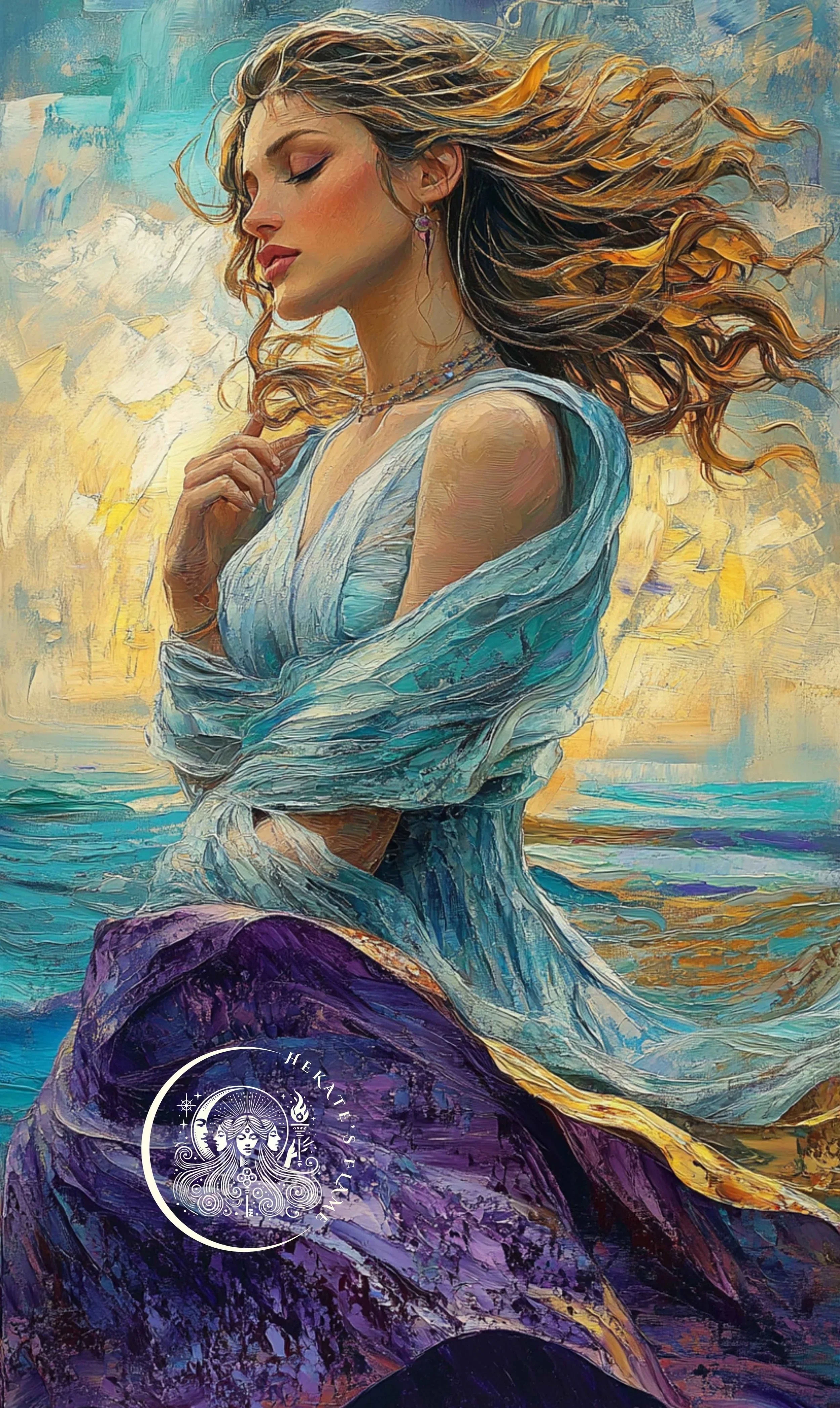 Seafoam’s Kiss carries the shimmer of Aphrodite’s birth, opening with marine notes, honeydew melon, and apple, blooming with lily of the valley and jasmine at its heart, and settling into a base of sandalwood and musk. It is an offering to love, beauty, and the sacred power of desire ~ a flame that echoes the tides, inviting tenderness, sensuality, and reverence into the spaces we inhabit.